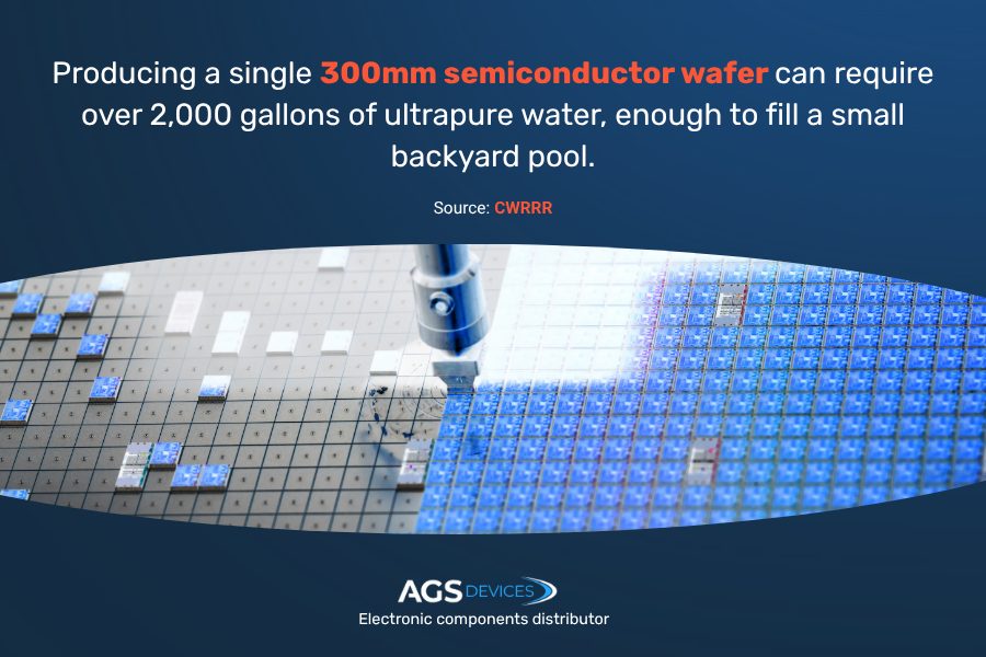 • Each semiconductor wafer can require over 2,000 gallons of ultrapure water per day, highlighting the need for closed-loop water systems